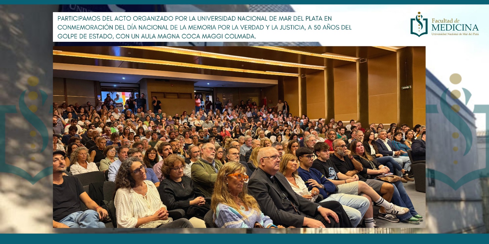 Participamos del acto organizado por la Universidad Nacional de Mar del Plata en conmemoración del Día Nacional de la Memoria por la Verdad y la Justicia, a 50 años del golpe de Estado, con un Aula Magna Coca Maggi colmada.La jornada se desarrolló en tres instancias: Comenzó en la Plaza de la Memoria del Complejo Universitario Manuel Belgrano, con la inauguración de la muestra fotográfica “50 años en imágenes”. Continuó con una emotiva intervención musical de la Orquesta-Escuela de voces, que puso en valor el arte como forma de memoria colectiva. Finalizó con la proyección del documental “Apenas habrá…in Novedades Prensa -