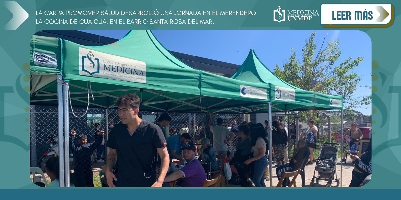 La Carpa Promover Salud desarrolló una jornada en el merendero La Cocina de Cua Cua, en el barrio Santa Rosa del Mar.Se brindaron consejerías sobre salud, nutrición y prevención, junto con actividades lúdicas sobre alimentación y niñeces. Agradecemos a las y los docentes, estudiantes y personal universitario que siempre acompañan con compromiso y trabajo en territorio, fortaleciendo el vínculo de la Escuela Superior de Medicina con la comunidad. #PromoverSalud #Prevención #EscuelaDeMedicina #UNMdPin Novedades Prensa -