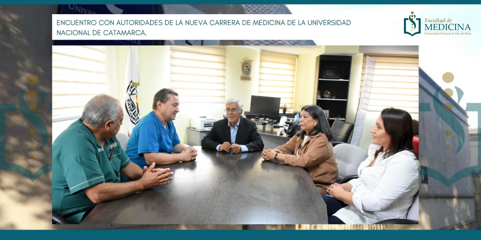 Encuentro con autoridades de la nueva carrera de Medicina de la Universidad Nacional de CatamarcaEn su visita a la capital catamarqueña, el decano de la Facultad de Medicina de la Universidad Nacional de Mar del Plata, Dr. Adrián Alasino, junto al Dr. Julio Sambueza, secretario de Gestión de Escenarios Curriculares, mantuvieron una reunión en la Facultad de Ciencias de la Salud con el equipo de trabajo de la nueva carrera de Medicina de la…in Novedades Prensa -